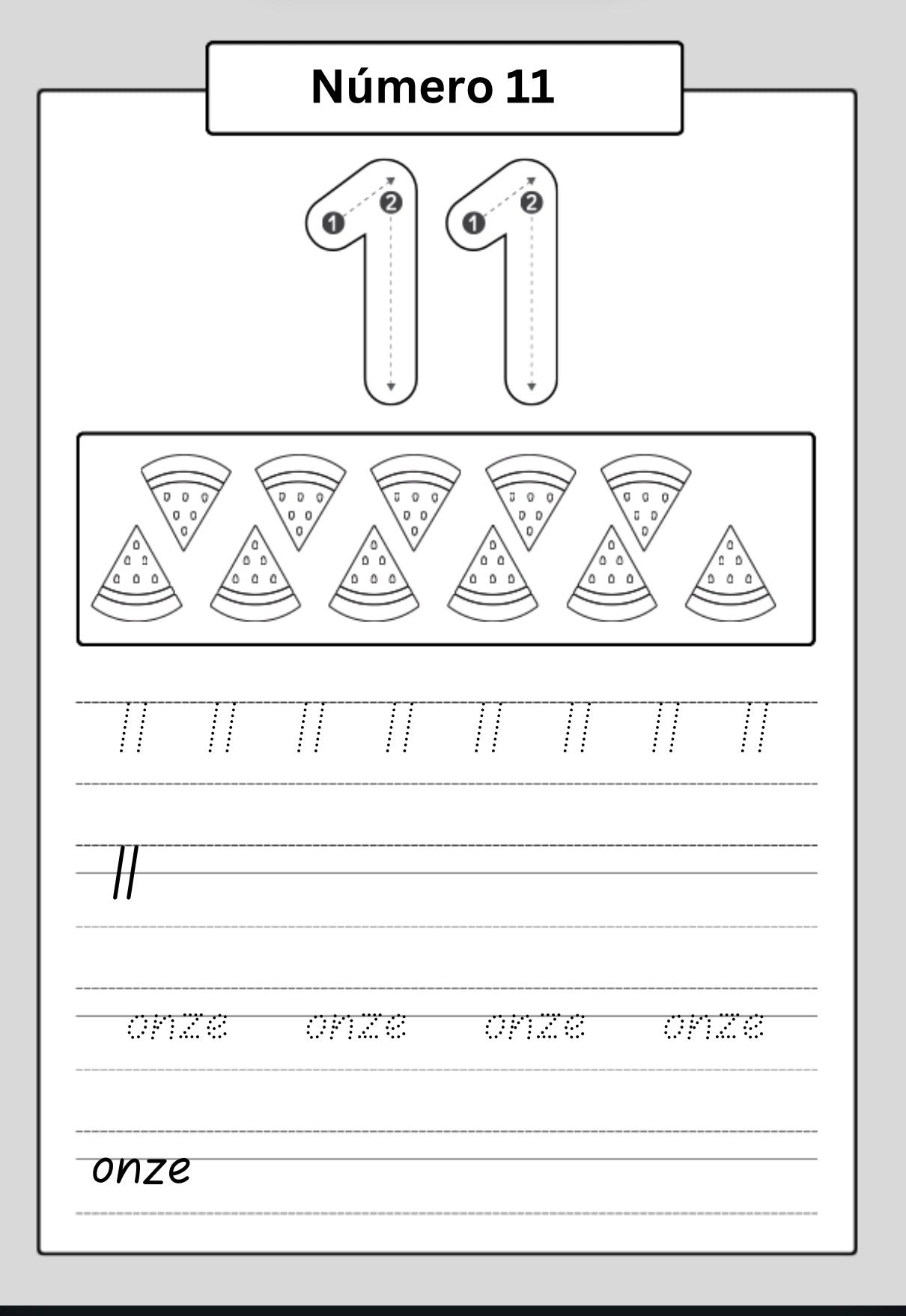 Este livro educativo ajuda as crianças a aprenderem os números de forma divertida e prática. Cada página inclui ilustrações para contar, números para traçar e palavras para copiar, promovendo a memorização e o desenvolvimento da motricidade fina.